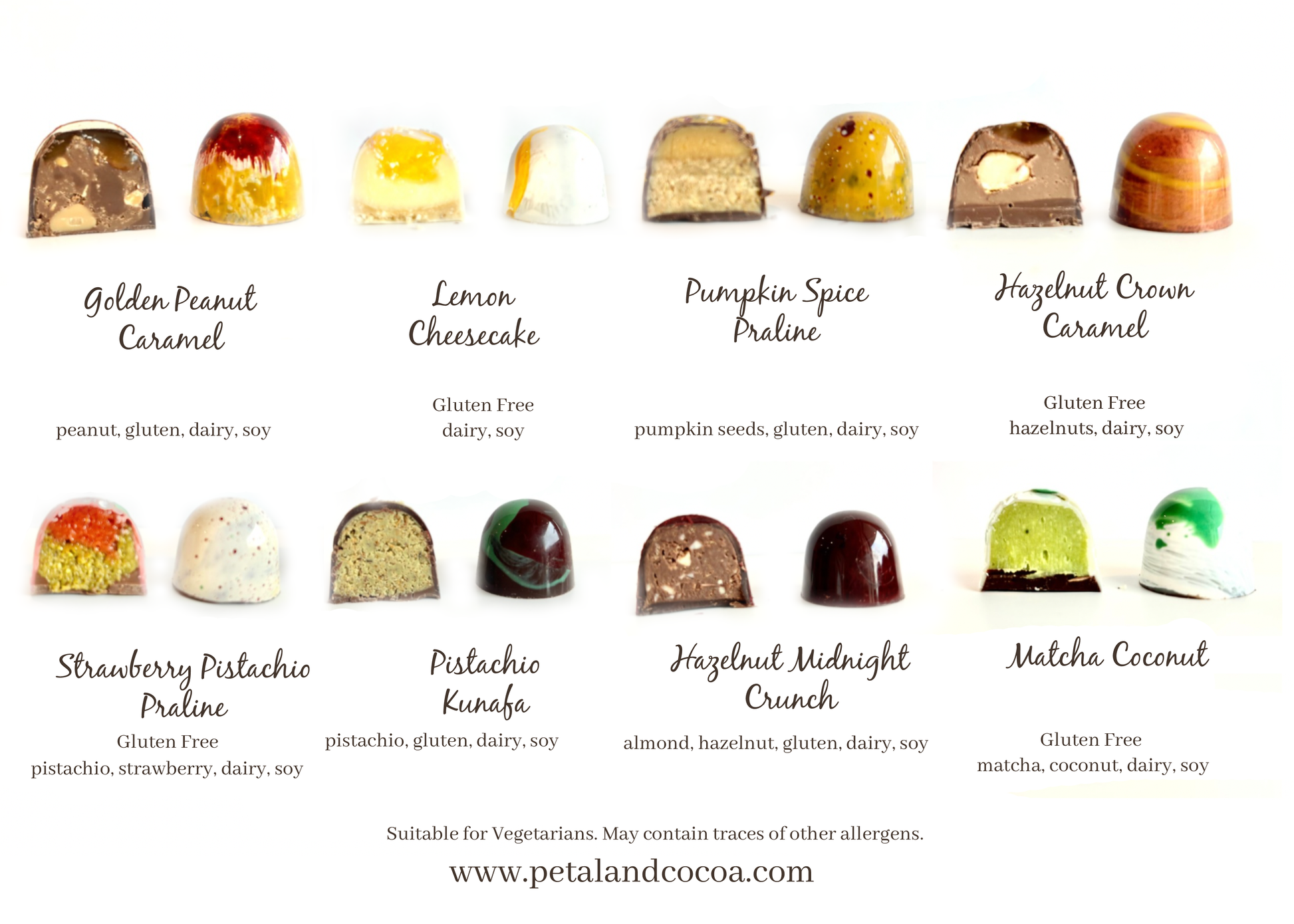 • Several flavours are gluten-free (all allergens listed per bonbon)